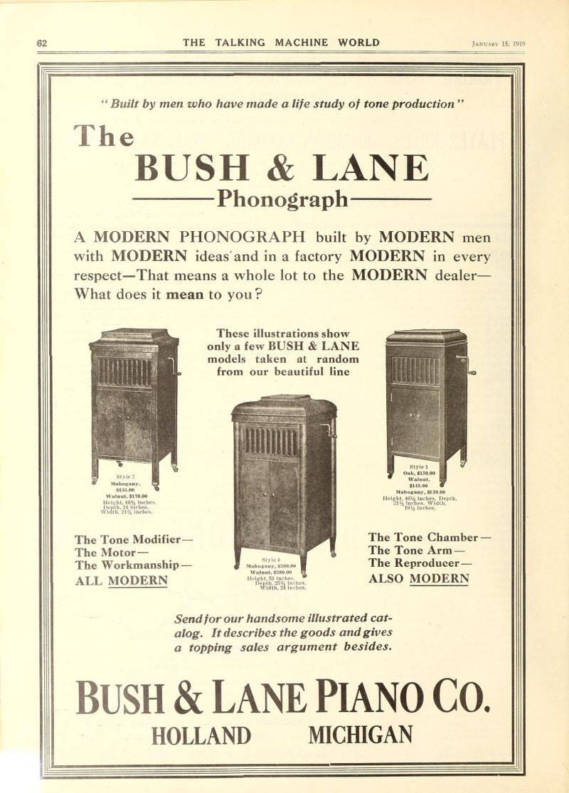 Bush & Lane Phonograph, The Talking Machine World, January 1919