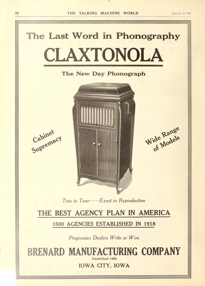 Brenard Manufacturing Co., The Talking Machine World, January 1919