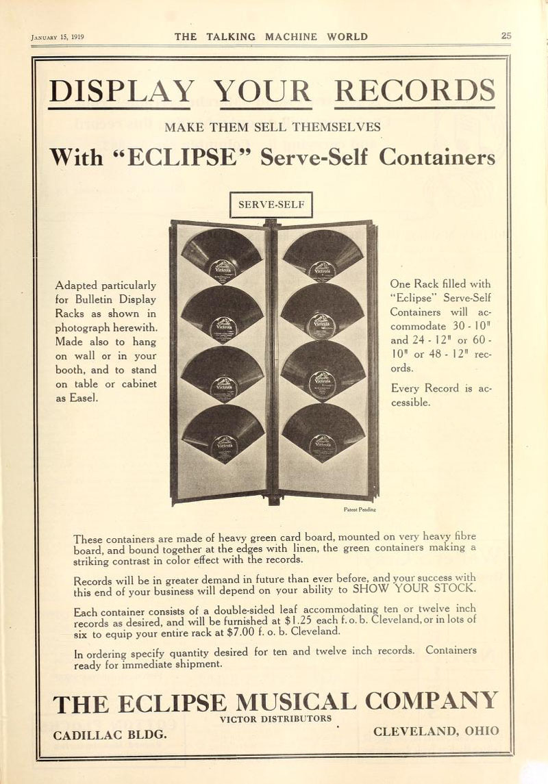 Eclipse Record Display Racks, The Talking Machine World, January 1919
