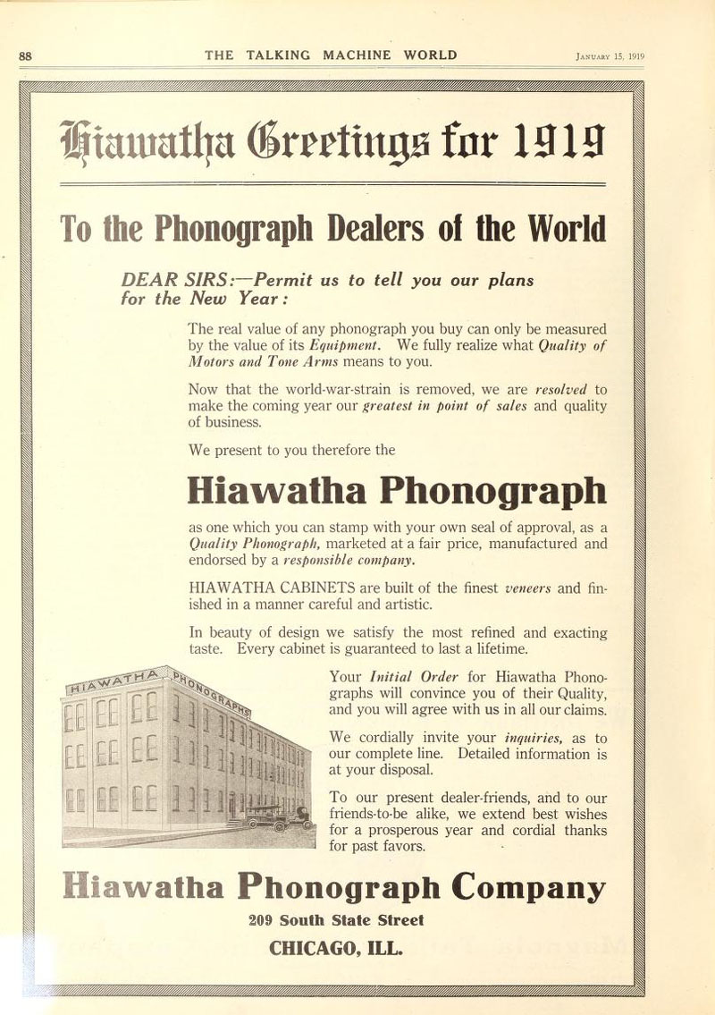 Hiawatha Phonograph Company, The Talking Machine World, January 1919