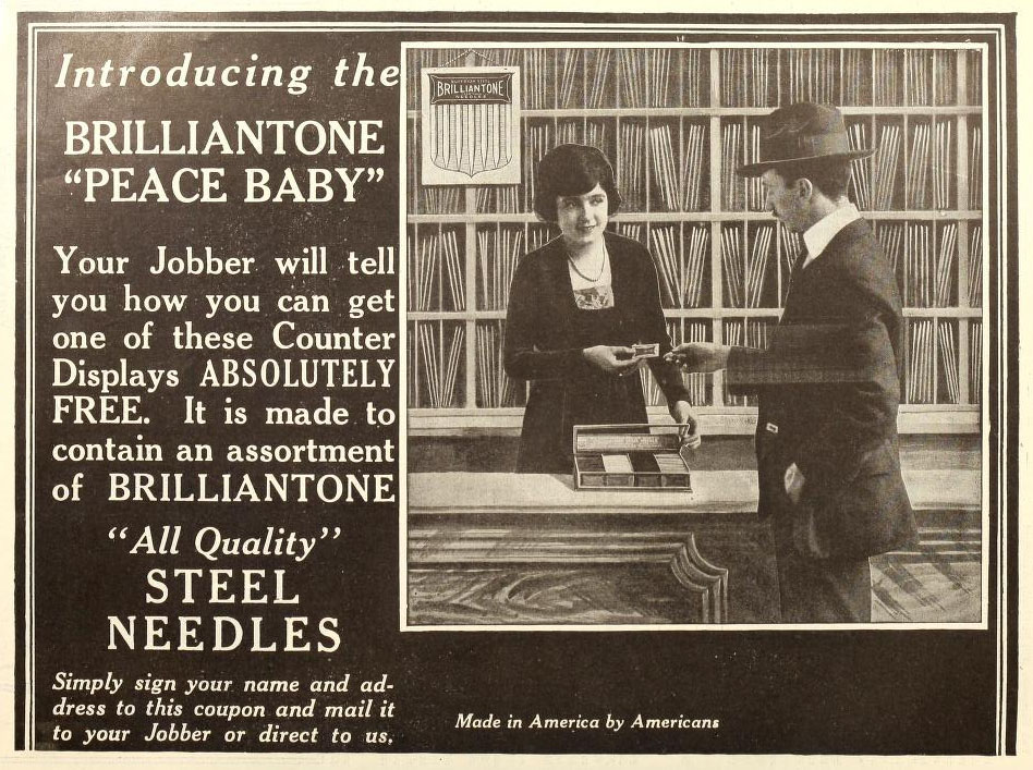 Brilliantone's "Peace Baby" Phonograph Needles, The Talking Machine World, February 1919