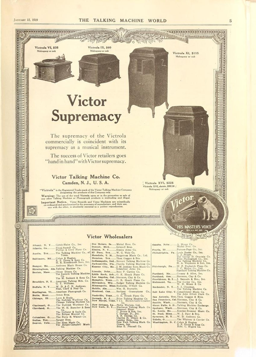 Lyon & Healy Victrola Distributors, The Talking Machine World, January 1919