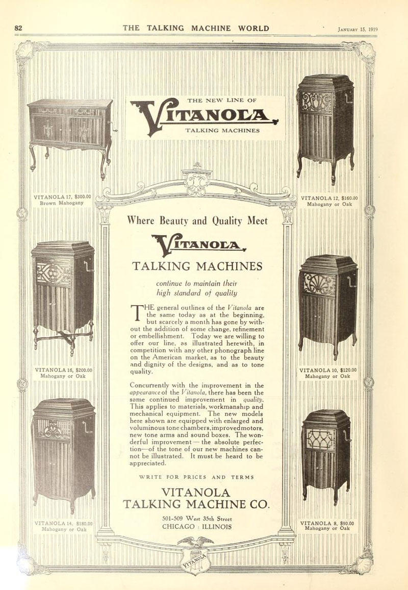 Vitanola Talking Machine Co., The Talking Machine World, January 1919