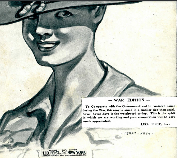 Smaller sized sheet music was issued during WWI "to co-operate with the Government and to conserve paper..."