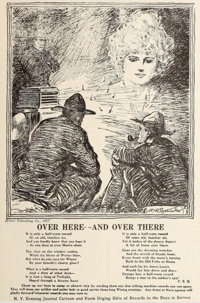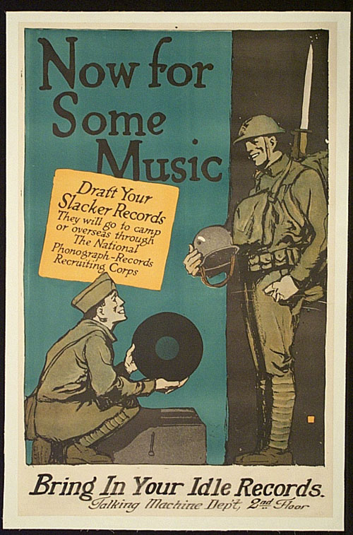 This poster was displayed in a Department store in 1918 to support World War I American troops by bringing in unused records. (2)