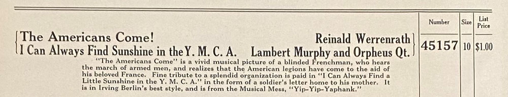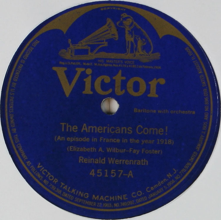 The Americans Come! Sung by Reinald Werrenrath, Victor Number 45157- A (Courtesy DAHR)