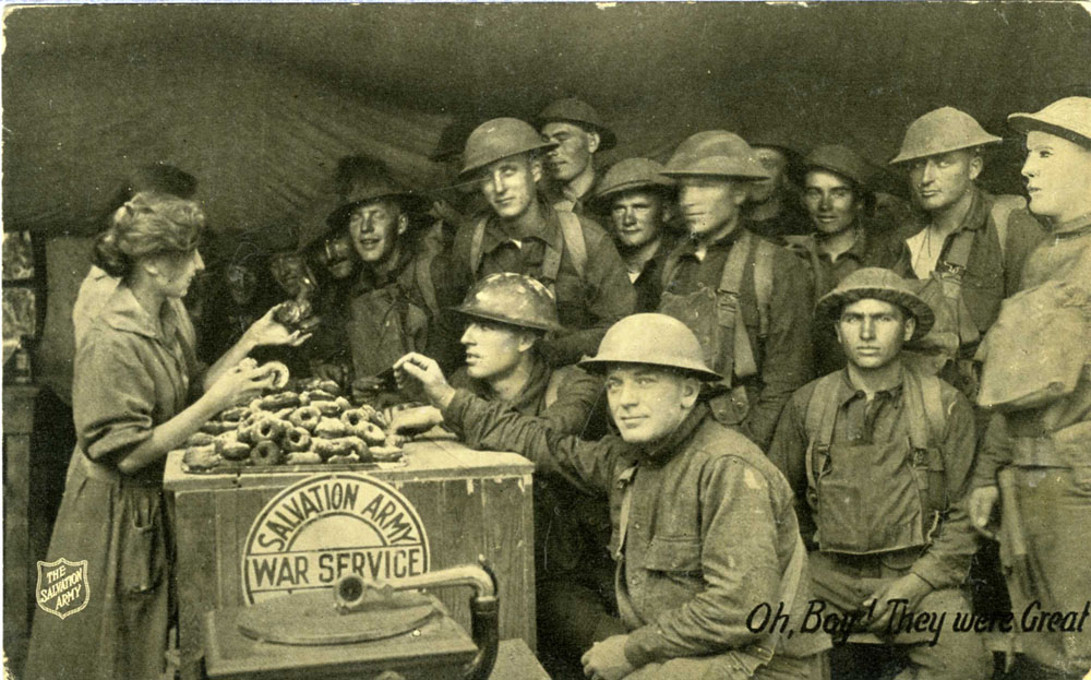Circa 1918, Salvation Army serving donuts