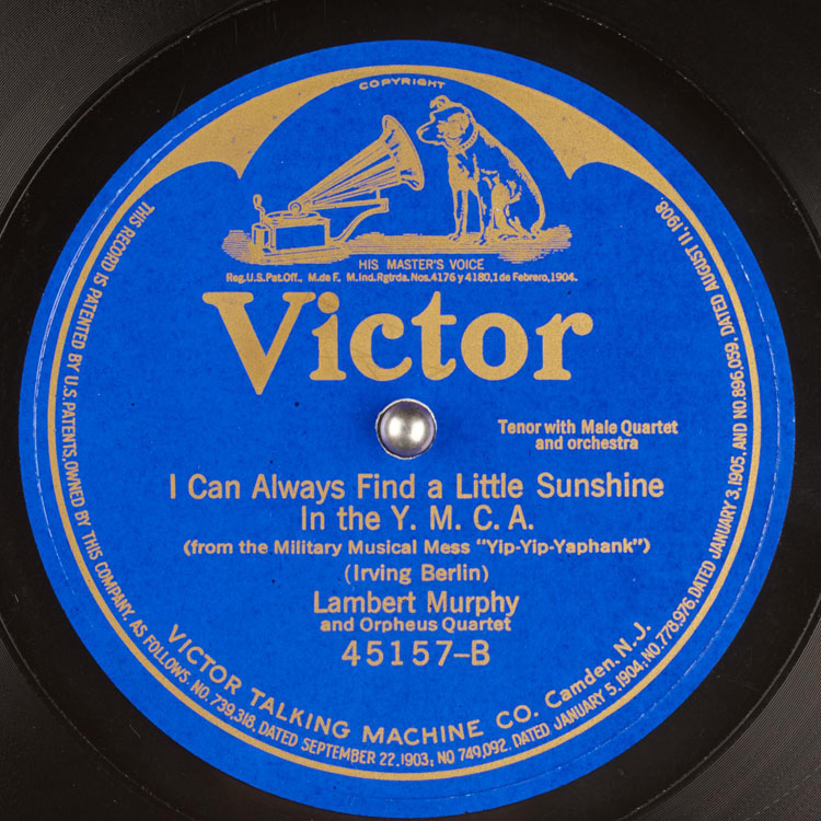Victor Record No. 45157-B. I Can Always Find a Little Sunshine in the Y.M.C.A. by Lambert Murphy and Orpheus Quartet (Courtesy DAHR)