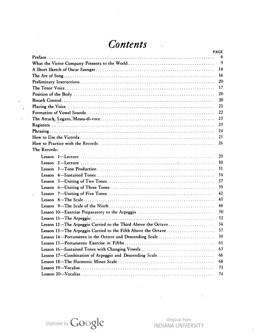 Title Page and Table of Contents for The Oscar Saenger Course in Vocal Training