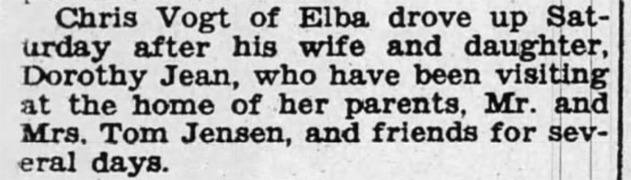 Chris grew up in the Elba area. He married Miss Hilda Jensen in 1926.