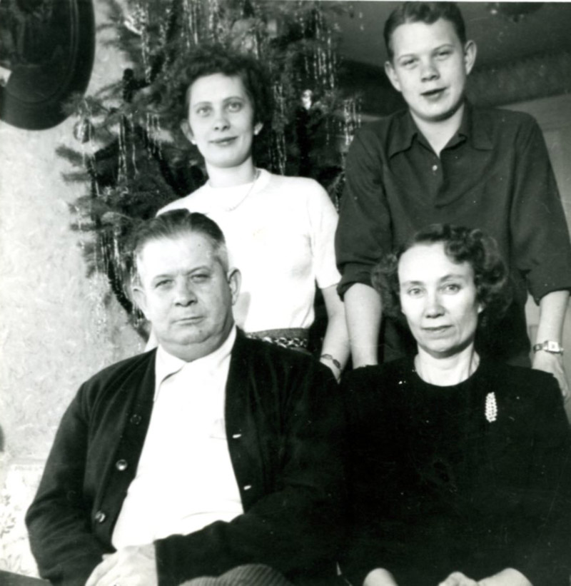 Chris and Hilda, Christmas 1951 at Anna and Manley's farm with daughter Dorothy and 'Sonny'
