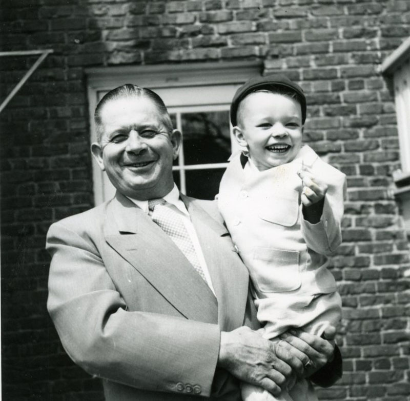 Chris and Doug outside Chris and Hilda's apartment building, ca. 1954.