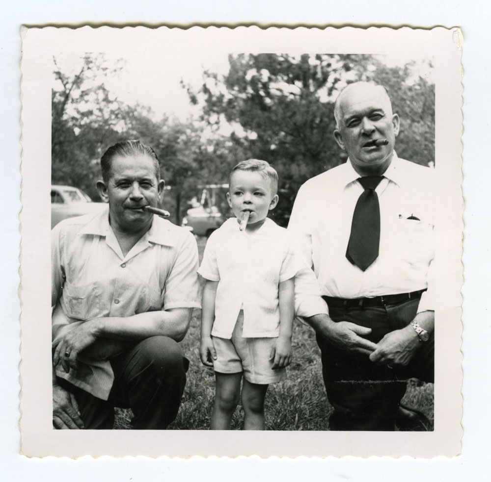 Chris had quite a sense of humor and liked to try to shock his much younger step-sister, Betty, which he was probably trying to do when this picture was taken with me standing between my two two uncles with a cigar in my mouth.