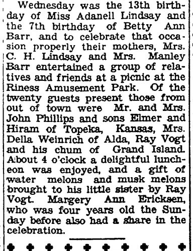 Marjorie Ann's 4th Birthday and Betty Ann's 7th Birthday Celebrations were noted in the St. Paul Phonograph newspaper, September 2, 1931.