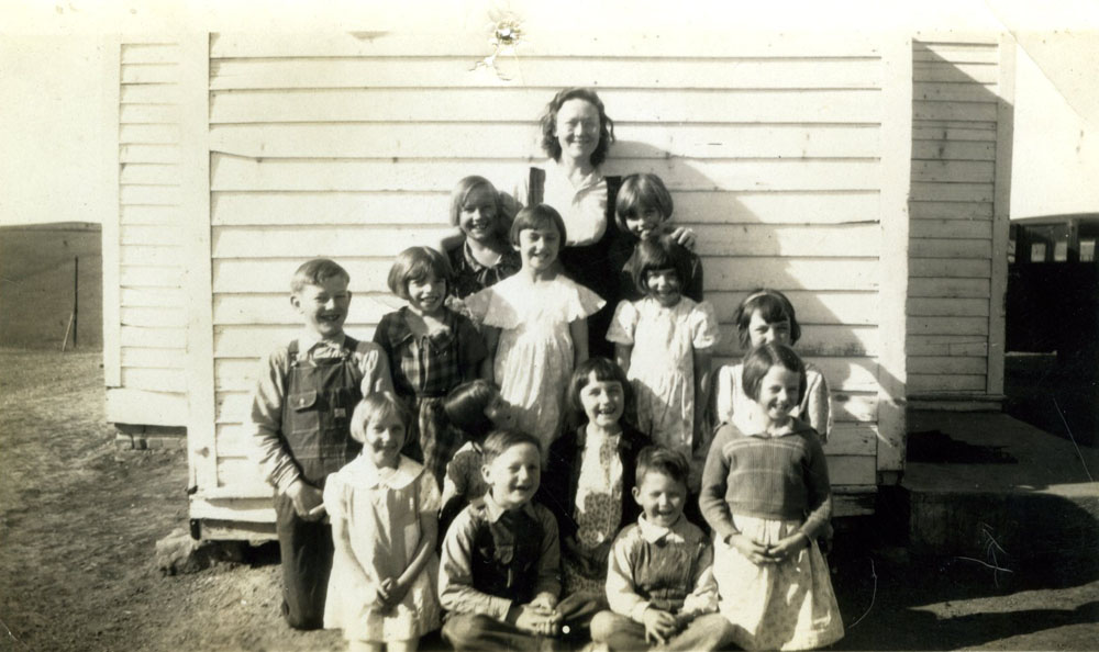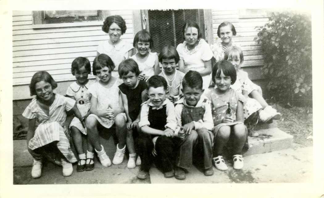 Anna Barr far left, Fay in middle with left hand on Marjorie Ann, school near St. Paul, NE, c. 1932.