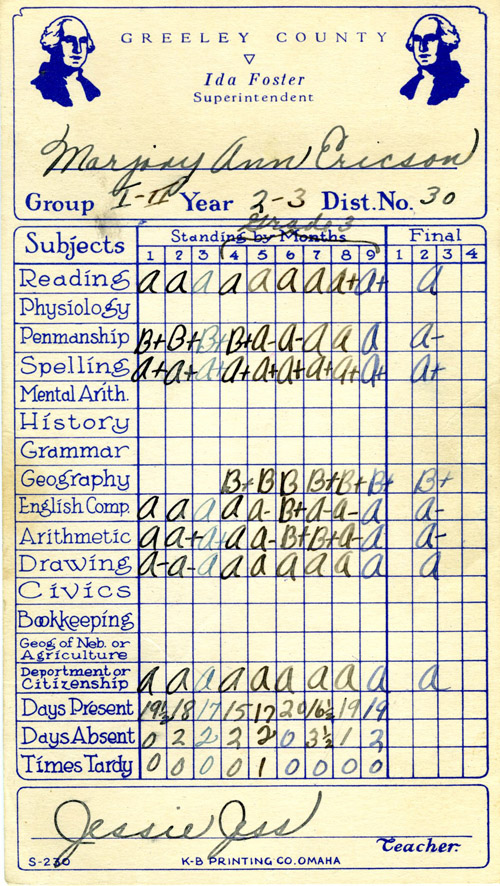 Marjorie Ann's final report card.