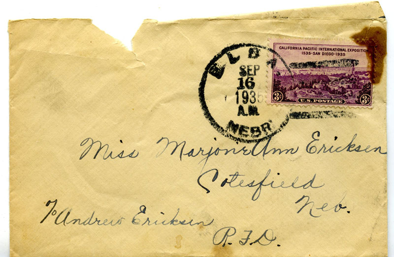 Marjorie Ann's Aunt Ivy sent Marjorie a letter on Monday September 16, 1935 starting with "I wonder if you won't be surprised when you get a letter today with the mail man."