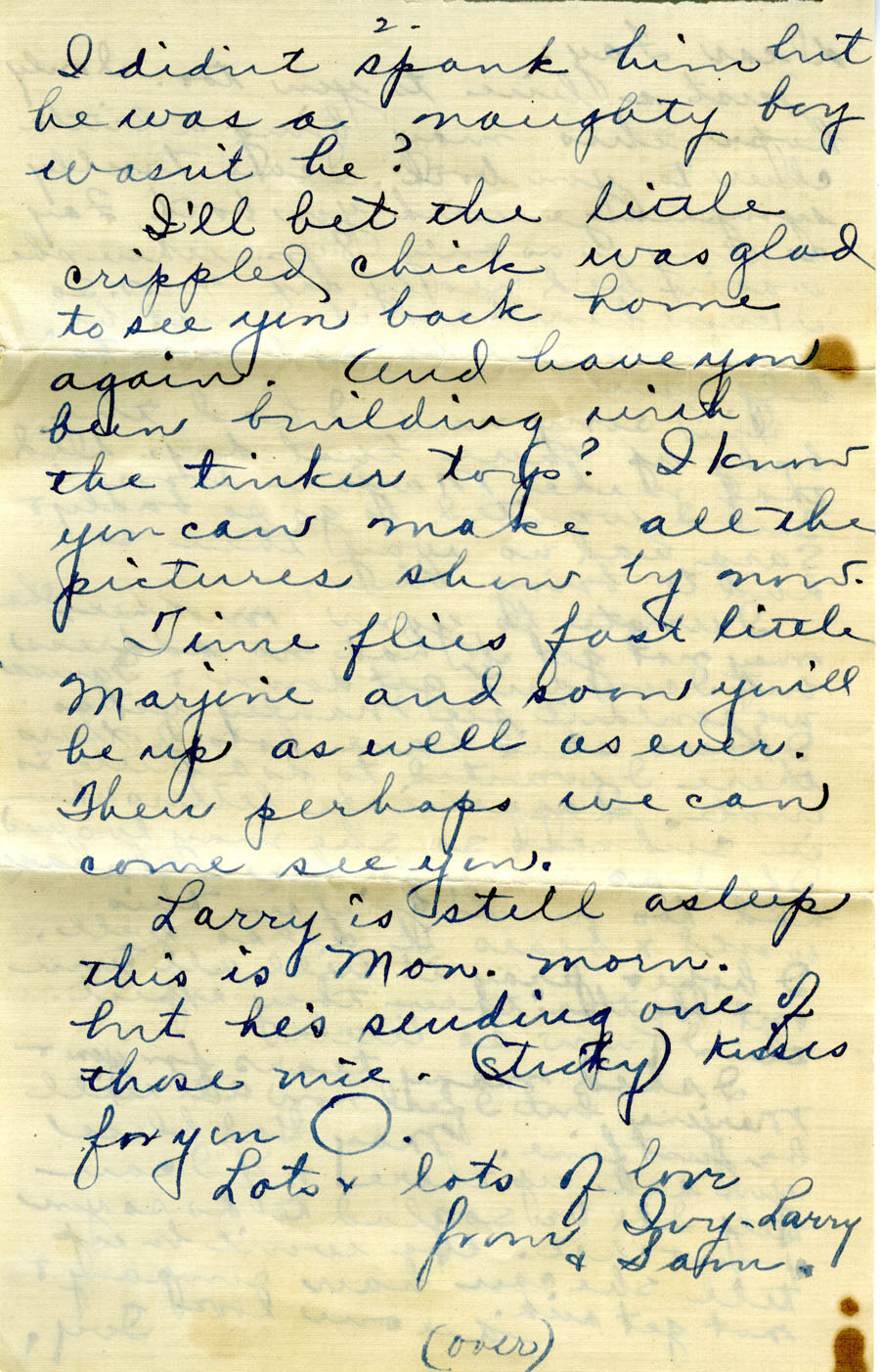 Time flies fast little Marjorie and soon you'll be up as well as ever. Then perhaps we can come see you.