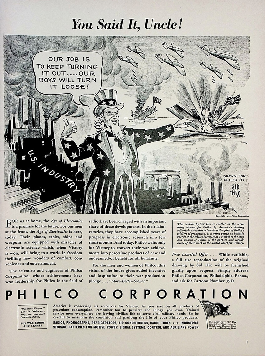 and engineers into peacetime products. Philco magazine ad, 1943.