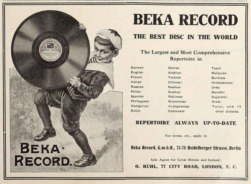 their Bekophone, an open horned talking machine.