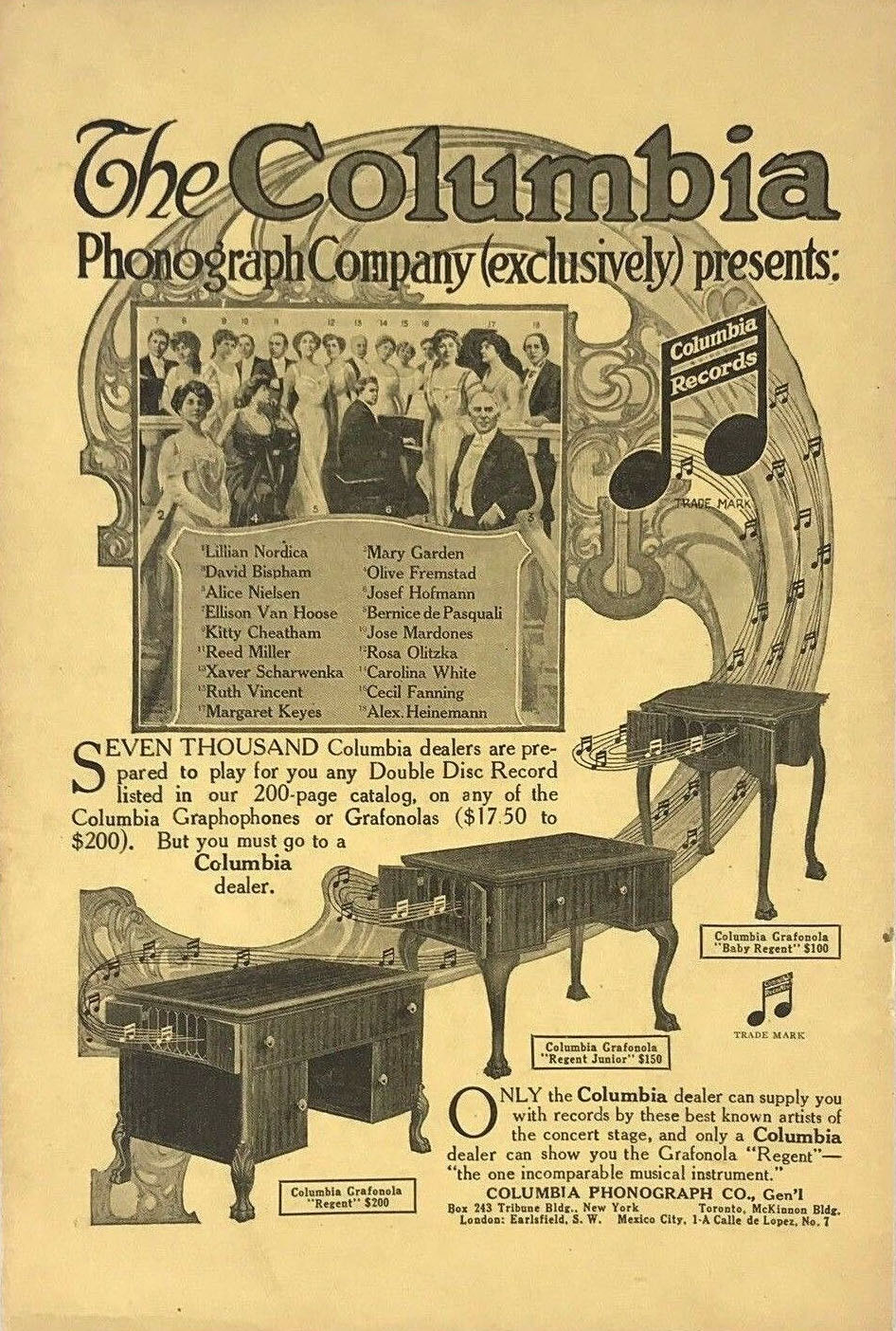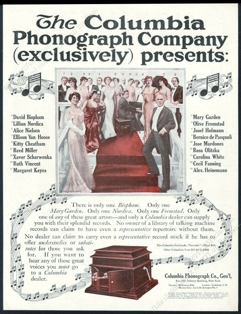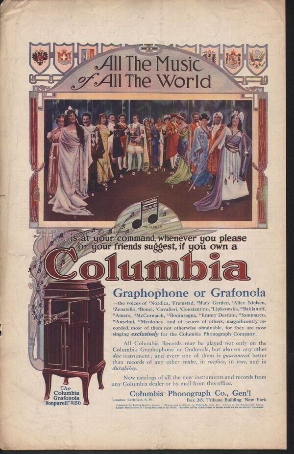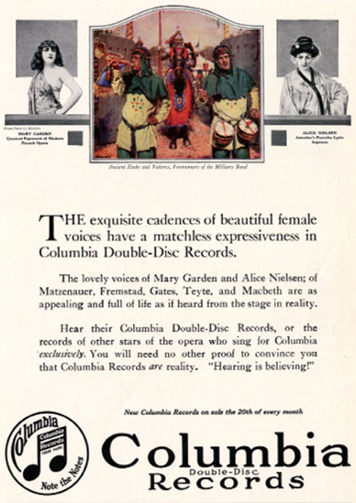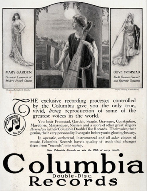 Columbia Records featuring Mary Garden and Alice Nielsen; Olive Fremstad listed in ad, Country Life in America, October 1916
