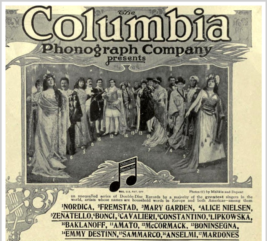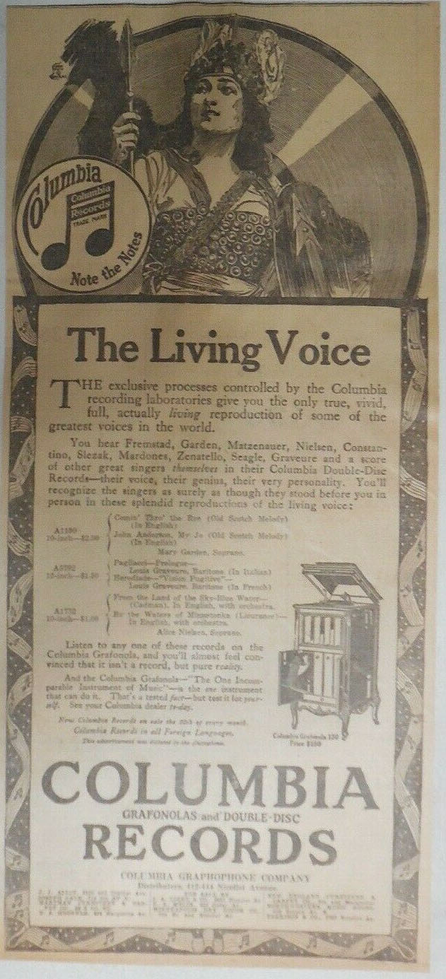 Columbia Records - You hear Fremstad, Garden..."1917