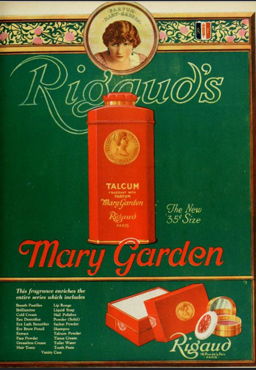 Parfum Mary Garden, Postcard circa 1917.
