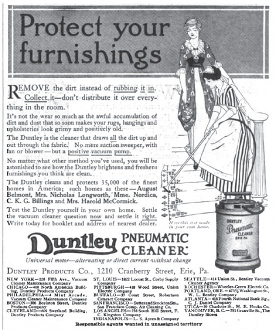 Cleans and Protects finest homes in America including Mmd. Nordica, The Saturday Evening Post 1913 (Courtesy of the Avid Listener)