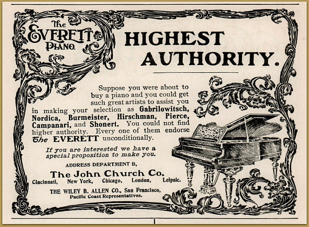 Nordica endoreses the Everett Piano, Harper's 1909