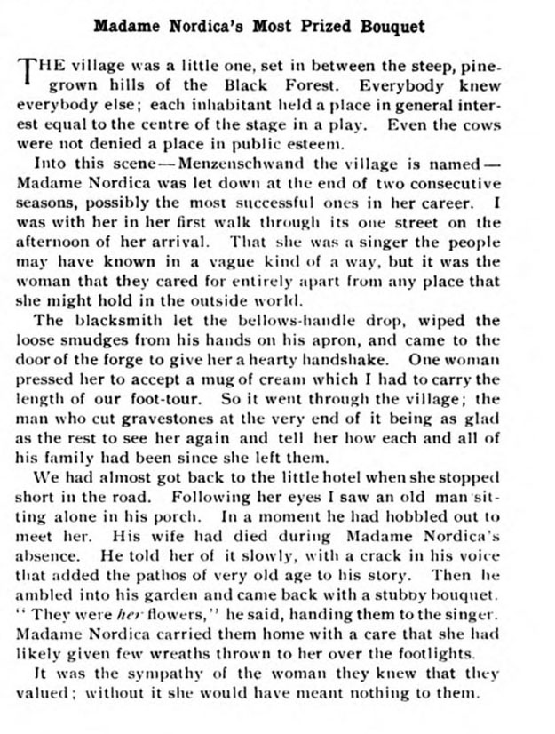 "Madame Nordica's Most Prized Bouquet," The Saturday Evening Post, October 31, 1903