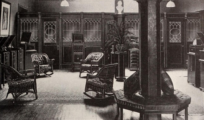 Silverstone Music Company's Concert Chamber "devoted exclusively to the exploitation of the Edison Diamond Disc." "This concert chamber is on the first floor and easy of access, besides five other spacy booths devoted to the demonstration of the Diamond."