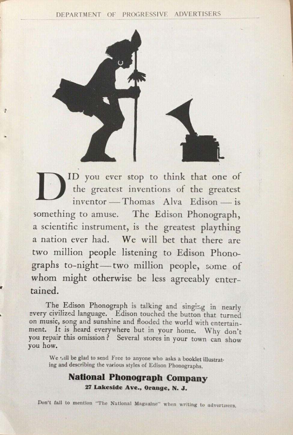 phonograph advertisements are examples of Edison's ads using "silhouttes"