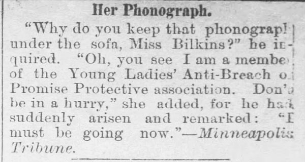 Young Ladies' Anti-Breach of Promise Protective assocation, The Rushville Standard, June 21, 1889