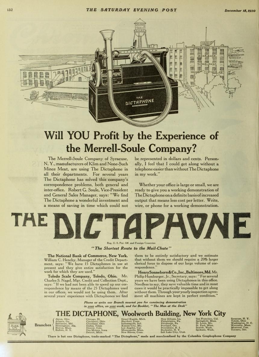 see a Dictaphone and puts "the tube to her ear."