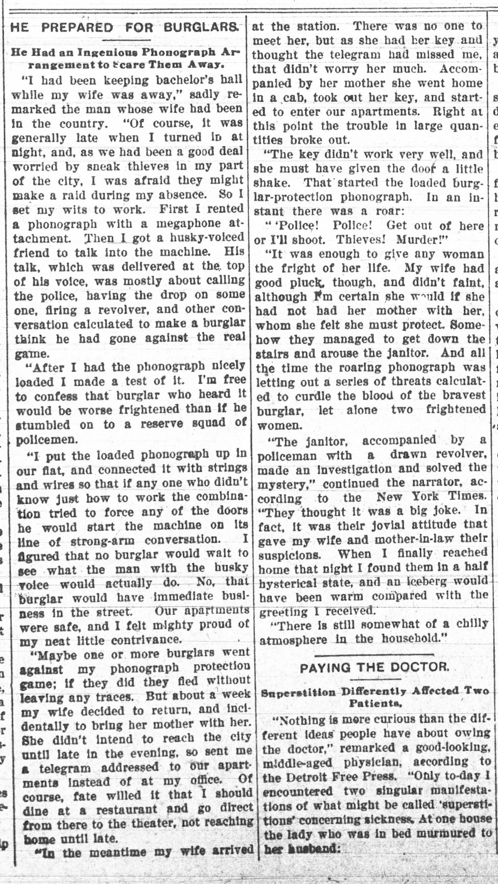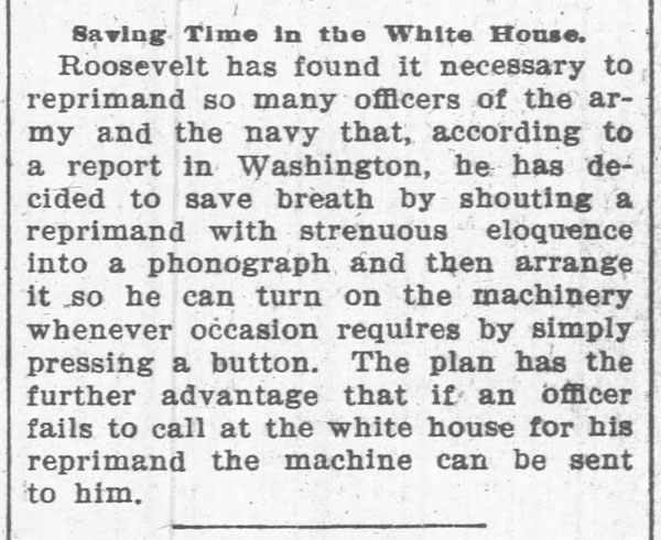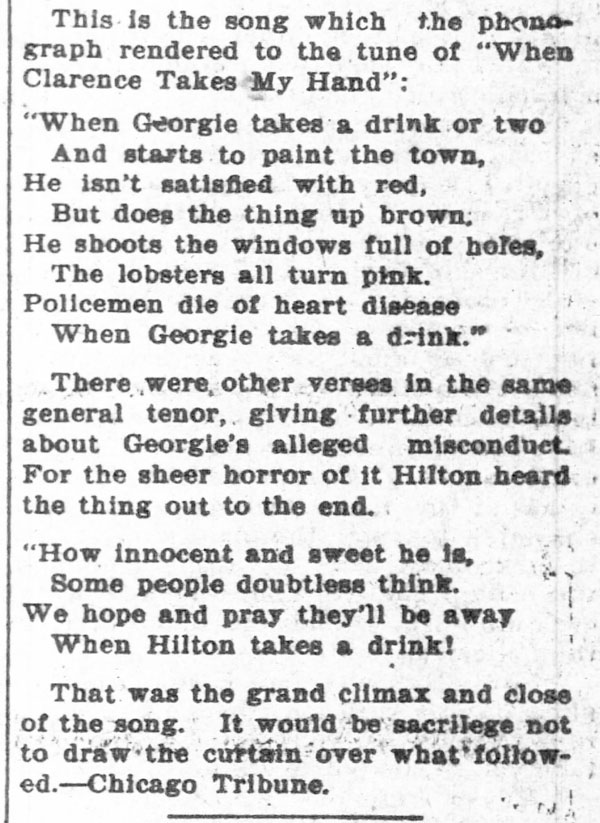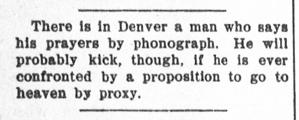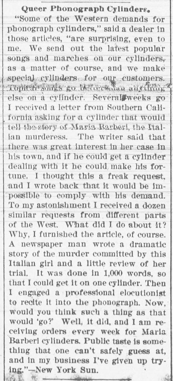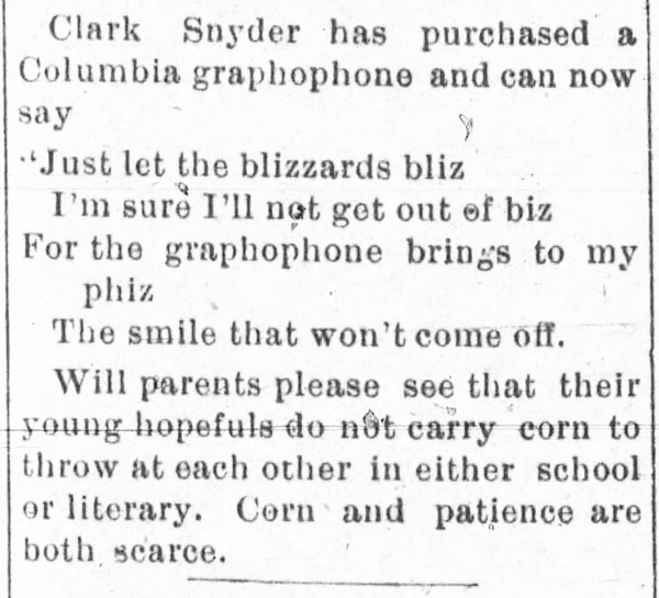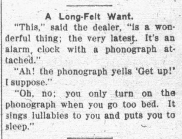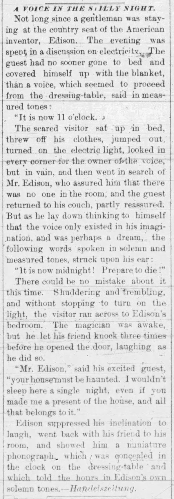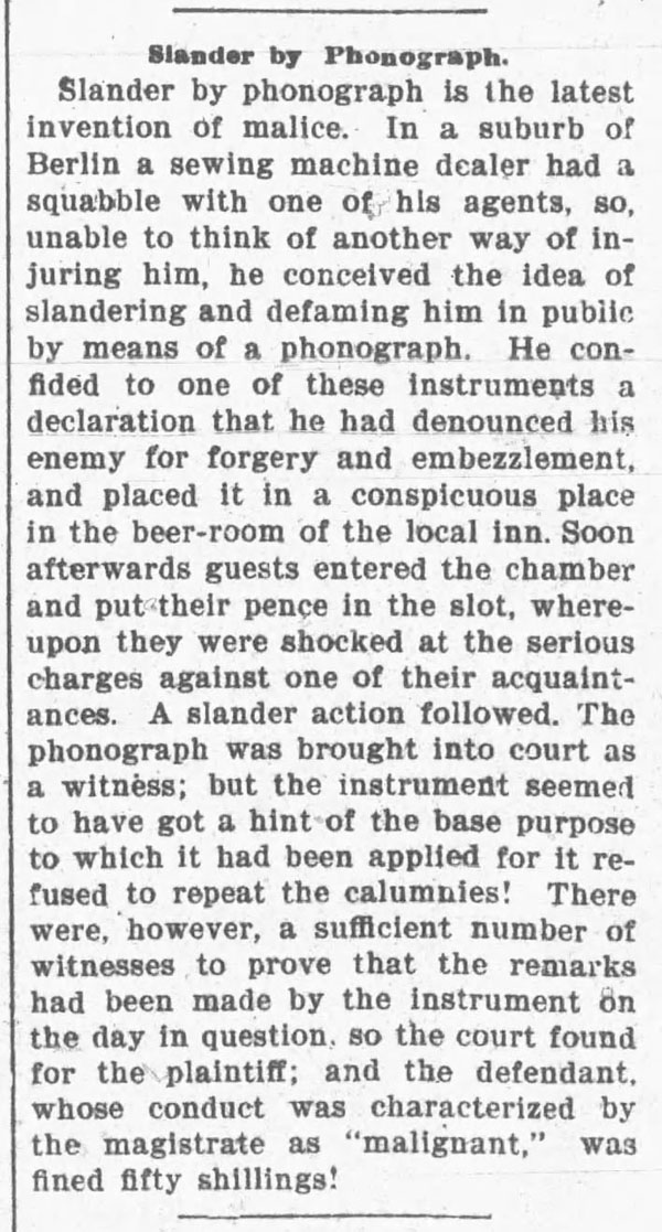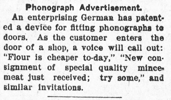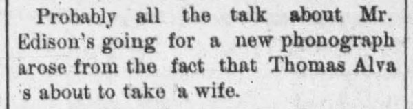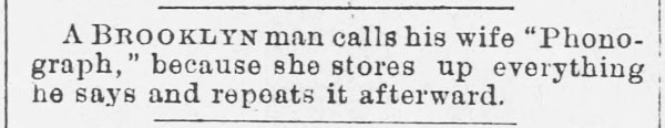 “A practical joker secretly introduced a phonograph in the kitchen…” The Rushville Standard, May 8, 1891