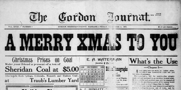 Largest stock of records in the west.” The Gordon Journal, November 28, 1902