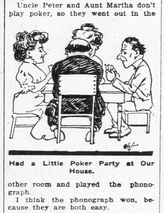 Extracted from “John Henry on Poker Playing” by Geo. V. Hobart, The Gordon Journal, October 29, 1908