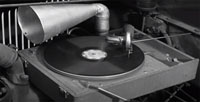 Kiss Tomorrow Goodbye (1950) Phonograph - A phonograph record that has captured incriminating evidence against a police detective (Ward Bond) is used as blackmail by James Cagney to force him to join his team of criminals. See Movie Poster and Movie Still.