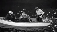 Two Record player scenes, Columbia Pictures, 1945. - A Three Stooges short-subject featuring the fish-peddling stooges trading their truck for a boat so that they can catch their own fish. In the first PhonoMovie connection Curly had installed his 'radio' invention under its hood. See Screenshots and Movie Clip for Curly's "Radio" in the Fish Truck.