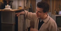 Record playing on turntable and LPs on shelves - Ellen Barkin has played an LP and puts it back in the wrong place and her husband Daniel Stern goes ballistic when he discovers her mistake. It's a painful scene to watch and includes his angry question "you never ask me what's on the flip side!"