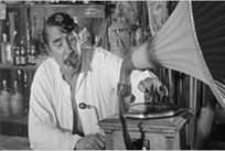 Portable Phonograph - This musical tells of a love triangle involving the famous gramaphone singer Sundardas (Surendra) who is happily married to Mohini (Prabha), and the even more popular singer Tilottama (Bibbo). Tilottama falls in love with Sundardas' voice and wants them to sing a duet and have an affair. Ghosh Babu (Advani) is the manager of the record label. Movie summary written by written by Sujit R. Varma. (Courtesy imdb.com)
