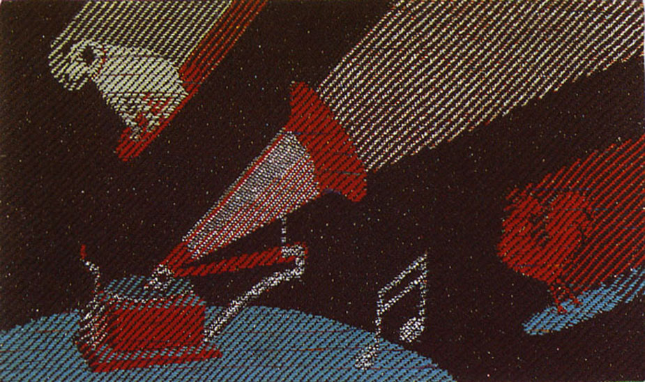 whimsical textile piece by artist Sheila O'Hara (known for her warp