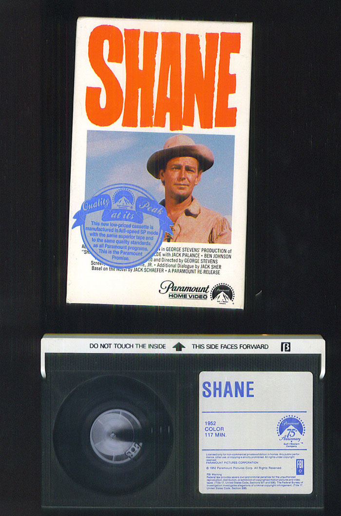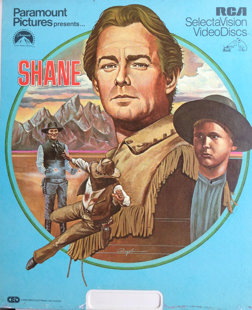 In the early 1980's I frequently enjoyed this movie at the home of my friends Dave and Kathy Aiken who owned an RCA SelectaVision videodisc player and Shane was one of their CED (Capacitance Electronic Discs) videodiscs. The videodisc itself would not be able to compete with video tapes and laserdiscs and by 1986 videodiscs were no longer made. But as a Friend of the Phonograph I appreciated CED technology because it was essentially a high-tech phonograph that actually used a record player needle to display images and sound. It was part of that new world of home entertainment that allowed the presentation of movies like Shane in your own home whenever you wanted to insert a disc.