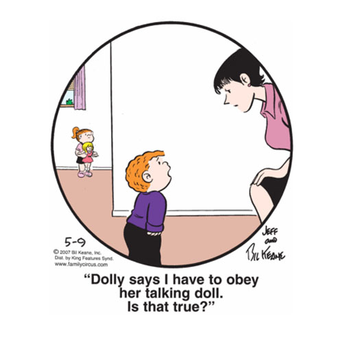 The father's humor is a bit questionable (as the mother correctly questions what's so funny about trying to confuse a baby?). But if you grew up in this era you can probably still hear the distinctive sound of pulling the chatty-ring and remember the variety of the See 'N Say talking toys.
